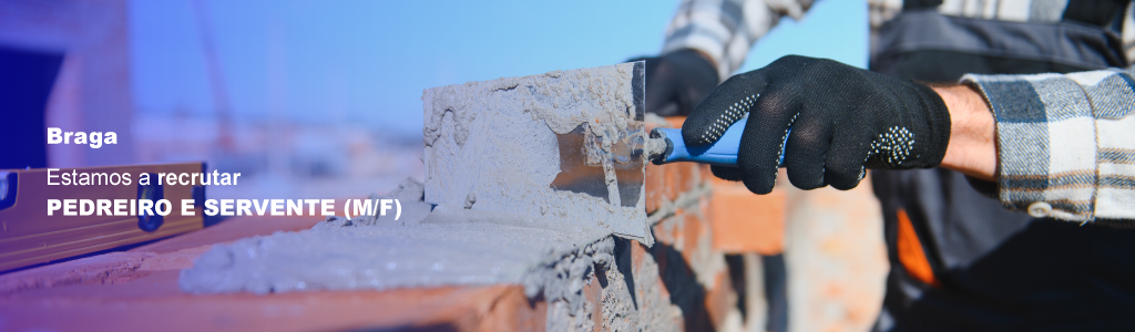 A LTG Group encontra-se a recrutar Pedreiro e Servente (M/F), para empresa de referência em Braga.